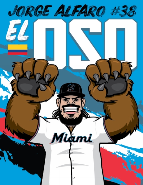 Illustration of Jorge "El Oso" Alfaro for the 2019 Miami Marlins